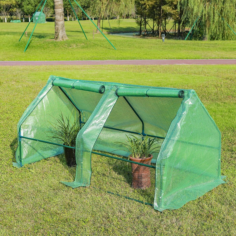 Каркас теплицы выполнен из металлической или оцинкованной (на выбор) трубы диаметром 20-25 мм, толщиной 0,6 мм. Пленочное покрытие полиэтиленовая сетчатая ткань 140г/м2. Теплица оснащена форточкой в каждой секции и одна дверь. Оптимальное и недорогое решение для дачи!